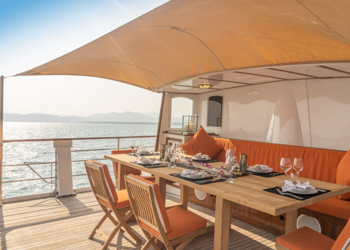 Camara C offers an impressive array of water sports equipment, catering to all levels of adventure. Whether you’re in the mood for wakeboarding, water skiing, paddleboarding, or snorkeling, there’s something for everyone. Kayaks are also available for those wishing to explore the tranquil bays and hidden coves that make Southeast Asia such a captivating destination. Accessing these activities is easy with Camara C’s custom-made 5.5-meter tender. Powered by a 225-horsepower engine, this tender allows you to reach hidden beaches, remote islands, and secret caves that larger vessels simply can’t access. Whether your goal is to explore, play, or simply relax, Camara C provides endless opportunities for adventure, always in the lap of luxury.
