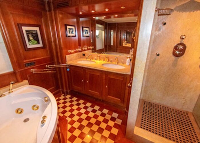 Chantal is sympathetically decorated to embrace her heritage features, with large windows that flood her elegant interior spaces with light. Social spaces are large and offer various different areas for guests to both gather and retreat. The on board accommodation suits a variety of different charter group configurations, from families to parties, with Chantal guaranteeing a memorable backdrop for any special occasion. Up to eight guests are accommodated in one stunning master and an additional three cabins, all ensuite and filled with luxury features. Guests will be well looked after, with up to eight crew accommodated on board.