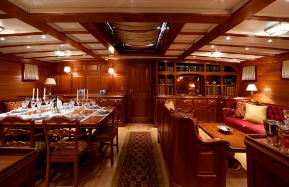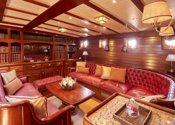 With luxurious accommodation for up to ten guests, the layout remains true to the original drawings from Herreshoff. This modern version enjoys the addition of discrete extras to ensure guests can enjoy all the modern comforts. All guest cabins are exquisitely finished with mahogany paneling, while all interior ornamental details follow the original Herreshoff designs.