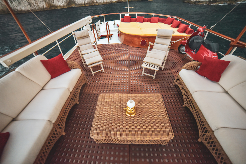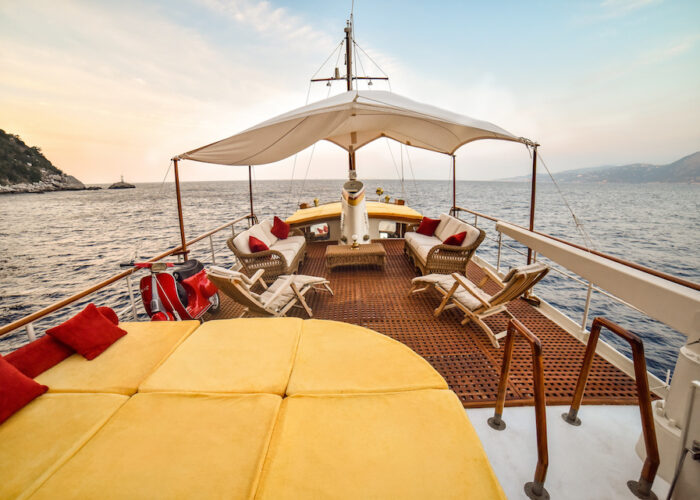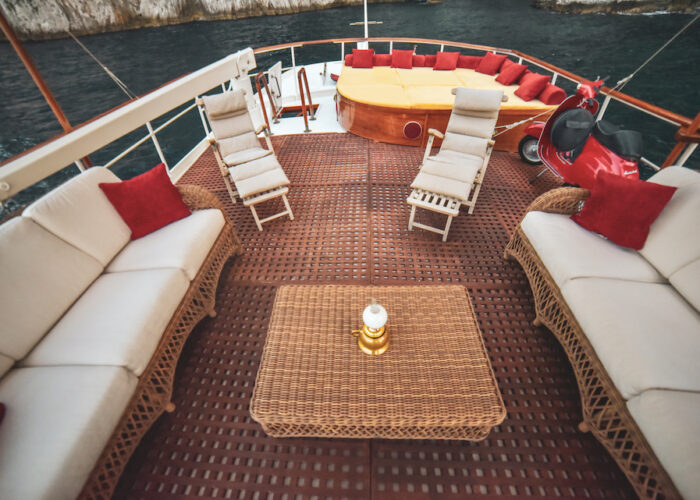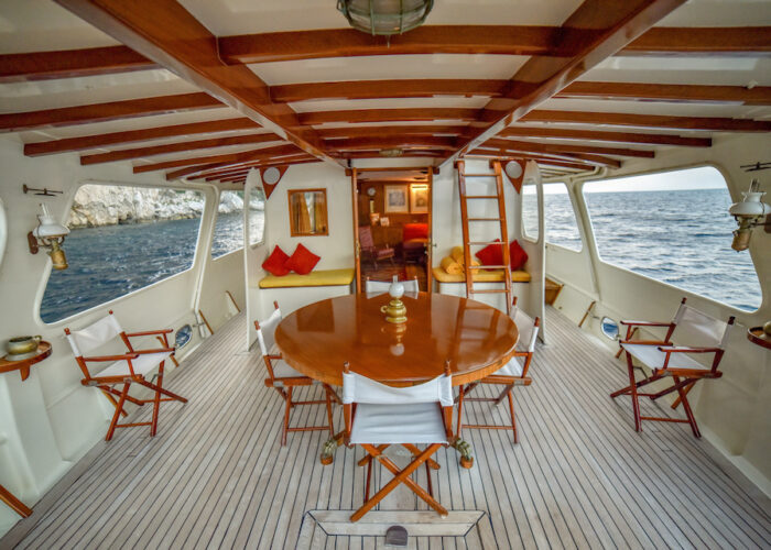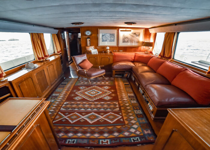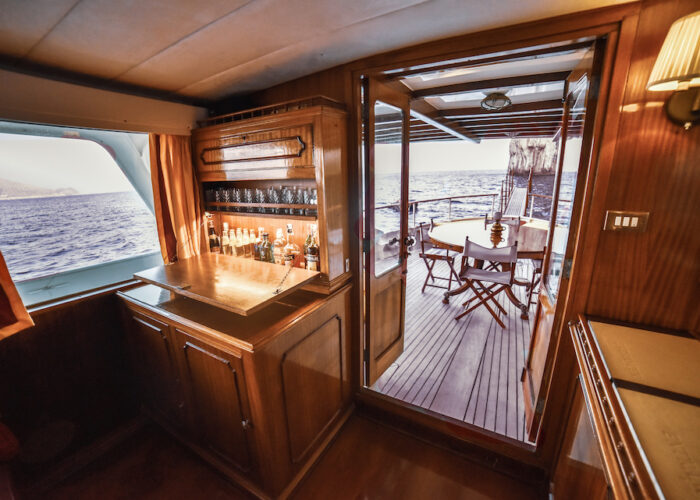 Life on deck unfolds effortlessly. Expansive outdoor spaces invite long, sunlit lunches, unhurried afternoons at anchor, and evenings spent beneath the glow of coastal villages drifting by. Inside, cool, air-conditioned interiors provide a welcome retreat from the Mediterranean heat.