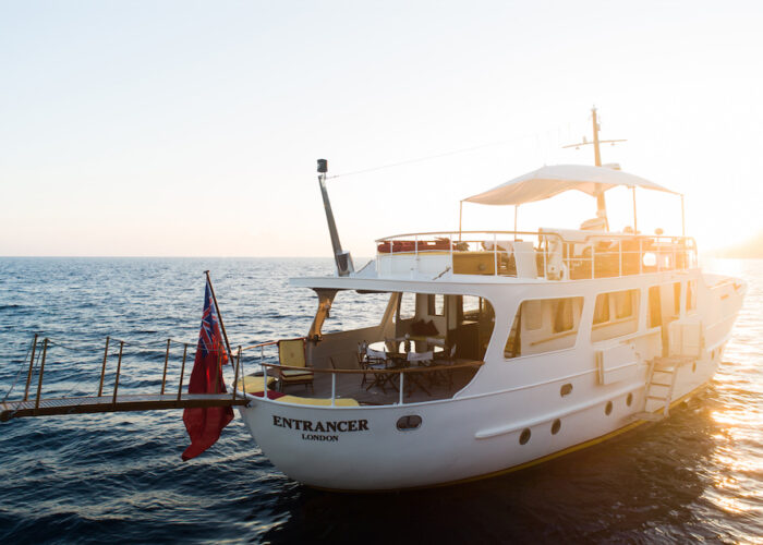 Gently cruising at 7 knots, Entrancer is designed as much for the journey as the destination. Her additional chase boat allows guests to cruise ahead at speed if they wish to spend more time exploring on land, or simply savour a longer lunch ashore and allow the yacht to relaocate so they can join later.