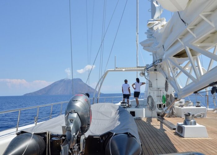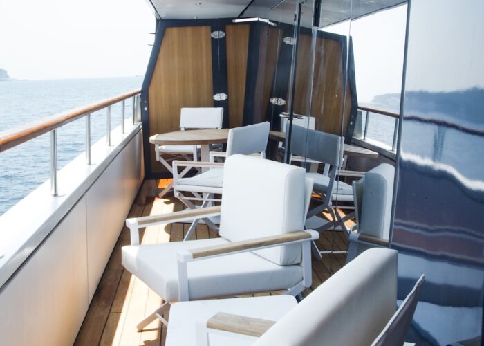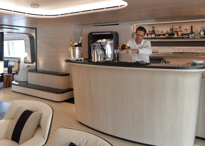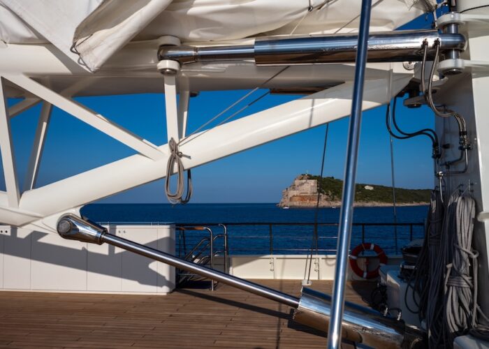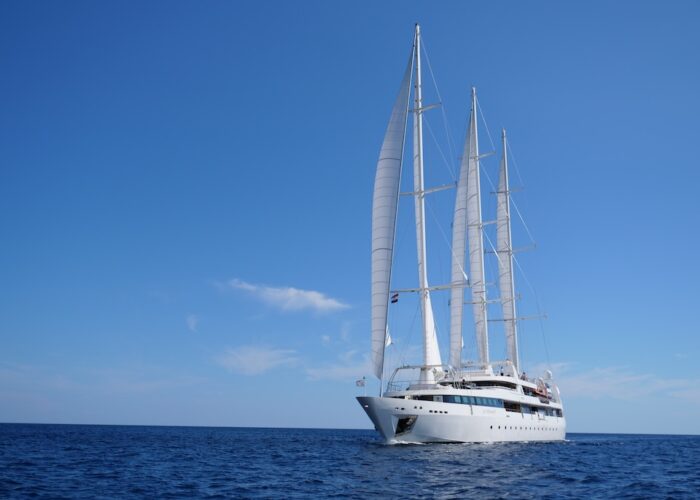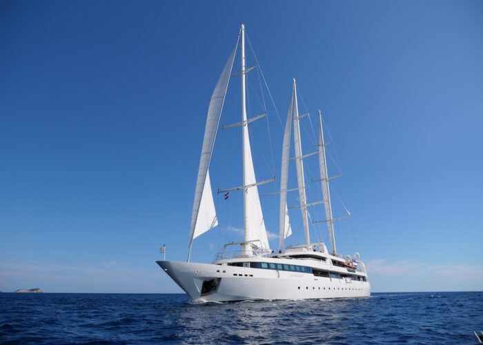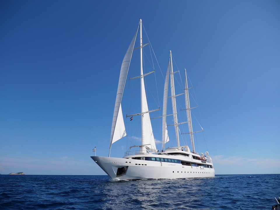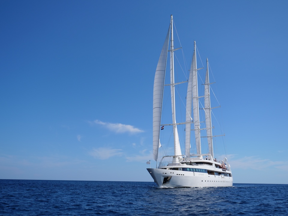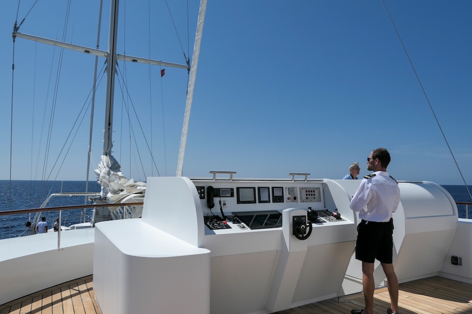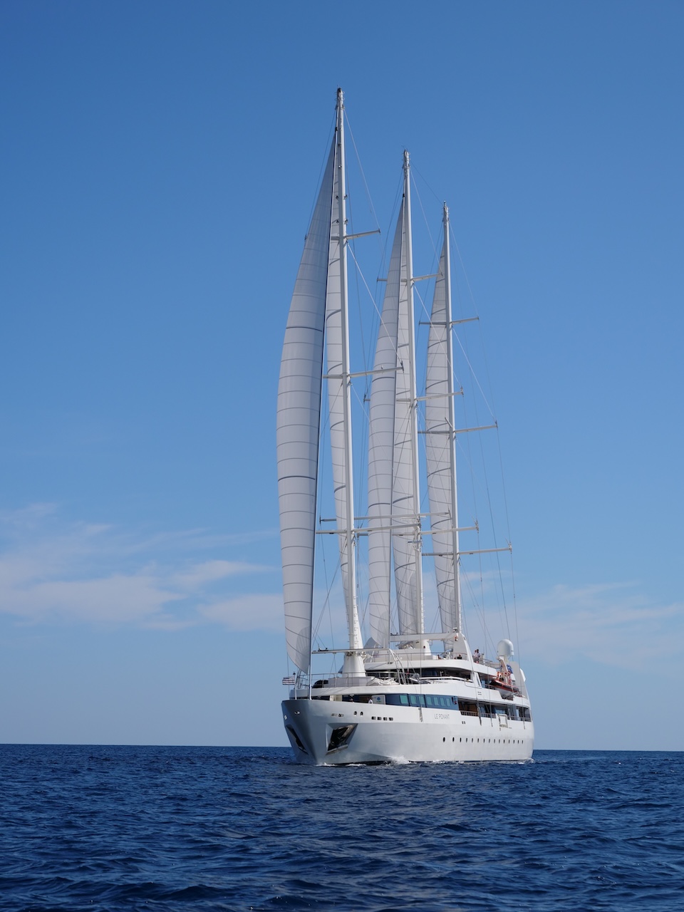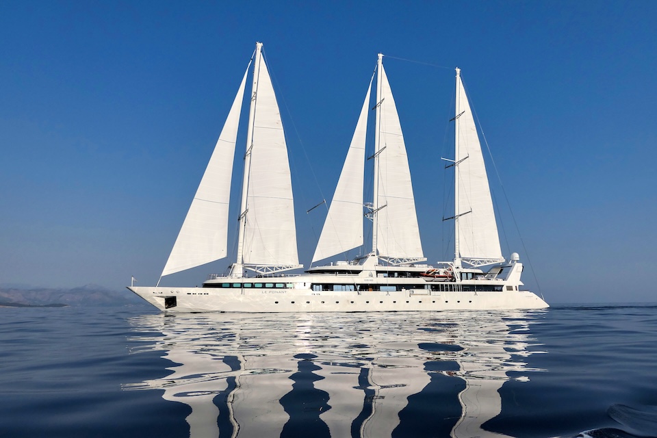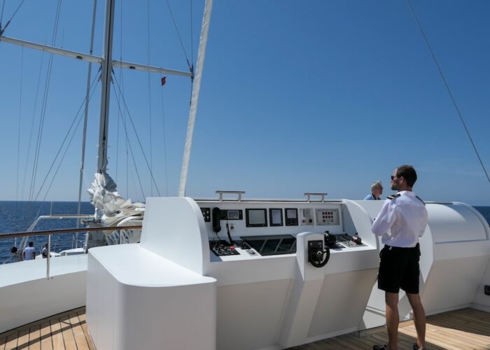She sails beautifully and the Captain and crew make the most of every opportunity to sail rather than motor. The experience of sailing on LE PONANT is wonderful, with minimal running rigging the crew are able to leave the expansive deck areas free for guests to relax while silently cruising under sail. Her rigging design is impressive for those who are sailing enthusiasts, as she uses giant hydraulic rams to trim the sails.