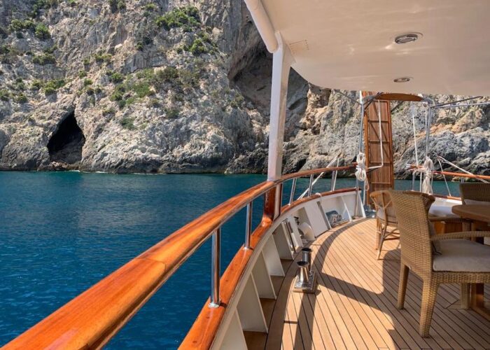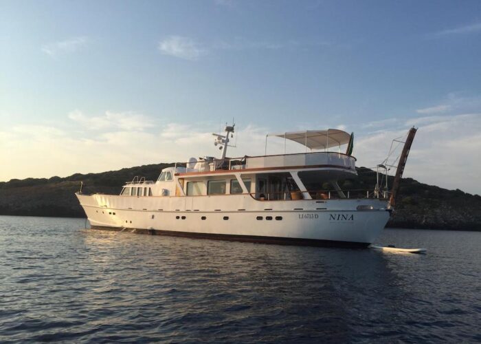 Nina is an elegant and classic displacement yacht with timeless appeal, completely restored and equipped with all amenities and zero speed stabiliser, ready to explore the hidden beauties of the West Mediterranean.