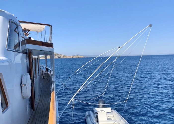 With her timeless Italian elegance and exquisite wood craftsmanship from a bygone era, NINA Spirit of the Wind offers a rare and deeply atmospheric yachting experience. Built in 1964 by the renowned Costaguta Shipyard, she blends classic charm with modern comforts, creating a warm, inviting platform for relaxed Mediterranean cruising.