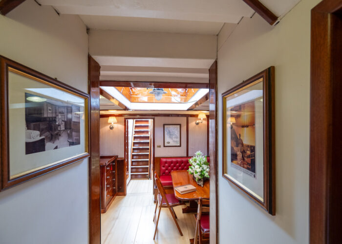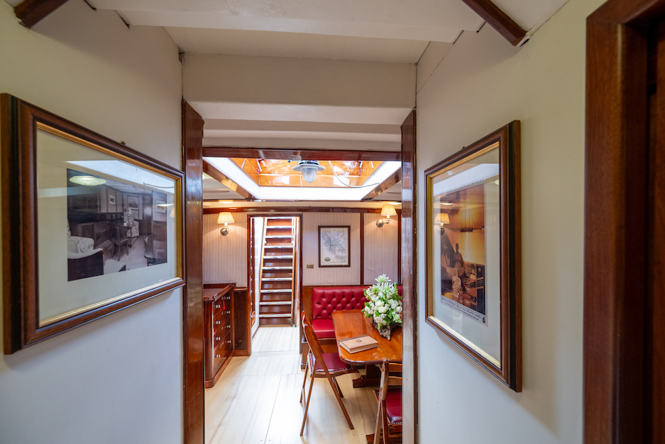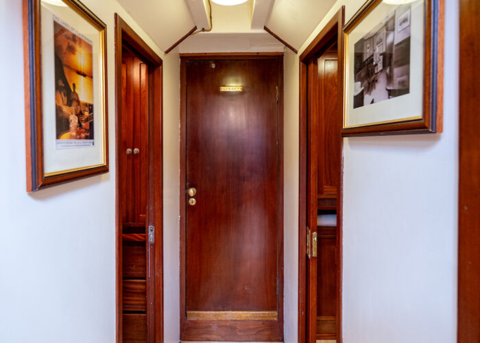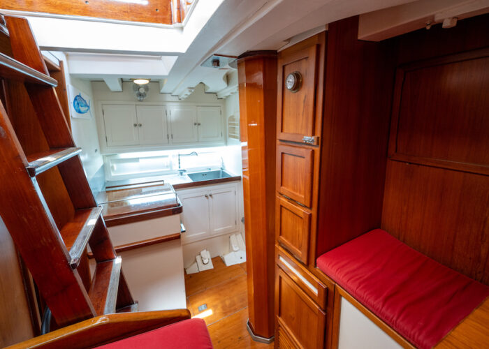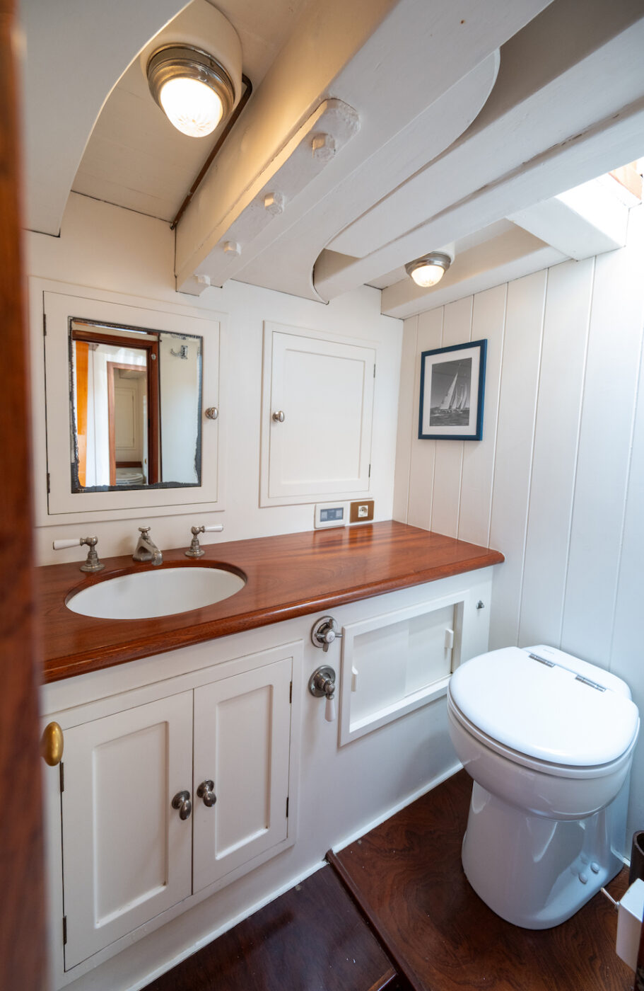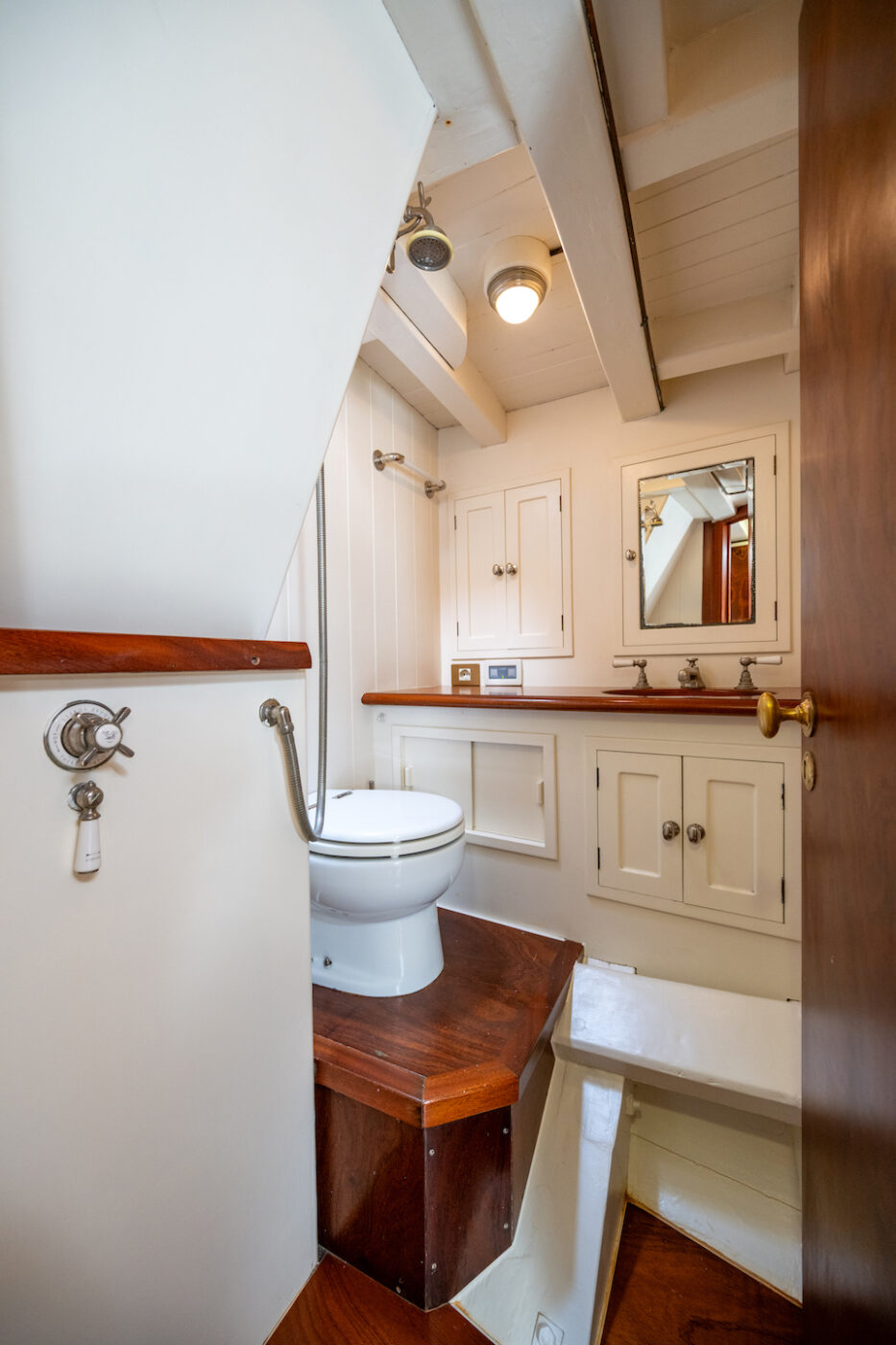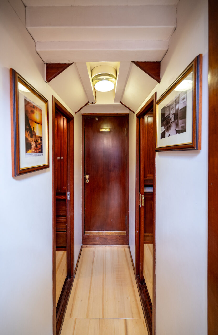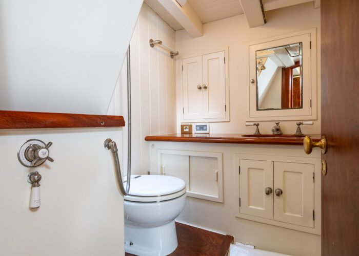 She sleeps 8 guests in 4 cabins, served by a crew of 3, offering all the comforts and safety of modern yachting without losing the charm and craftsmanship of the 1930s.