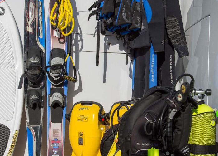 Designed and built for adventure and exploration, TELEOST offers one of the most extensive dive programs in the South Pacific. Equipped with a Nitrox system on board, dive compressors and dive equipment for 8 guests, and a hyperbaric chamber for remote safety. The crew are all certified divers with Dive masters on board. TELEOST is the ultimate family yacht, the toys on board will envy any yacht and keep the most adventurous at heart entertained.