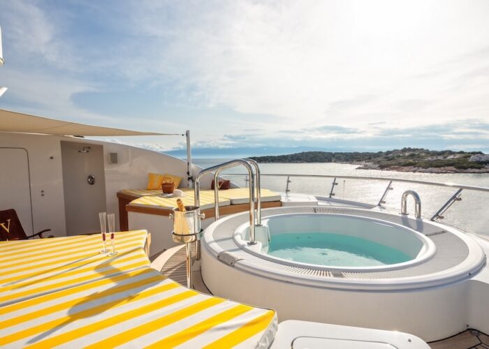 Outdoors on VERA guests are spoilt for choice for with space for sunbathing, socialising and dining. With three outdoor decks there is plenty of space for alfresco dining under the stars or lounging on the sunpads. There is even a jacuzzi on the sun deck – the perfect spot for relaxing with a glass of bubbly!